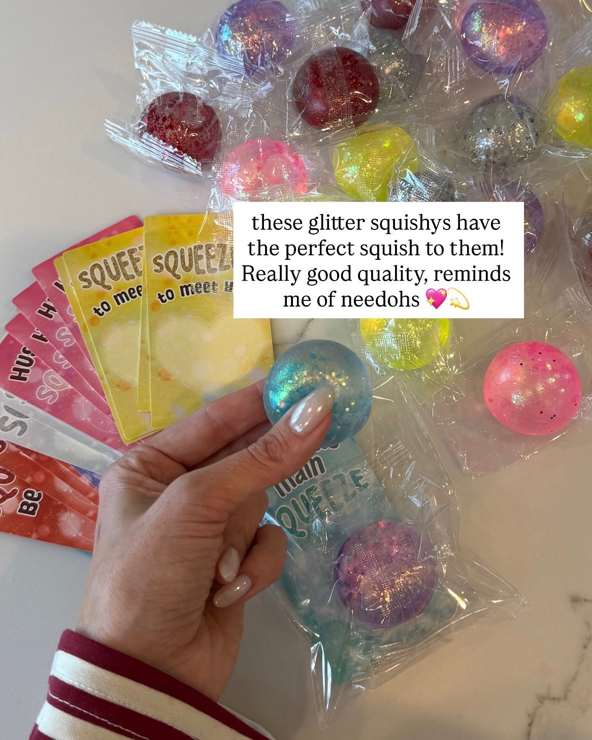 If you haven’t already – its time to order the kids class party Valentines!! I went with these squishy sparkly balls. They feel like needohs and all my kids love them. Rounded up some other valentines ideas here.