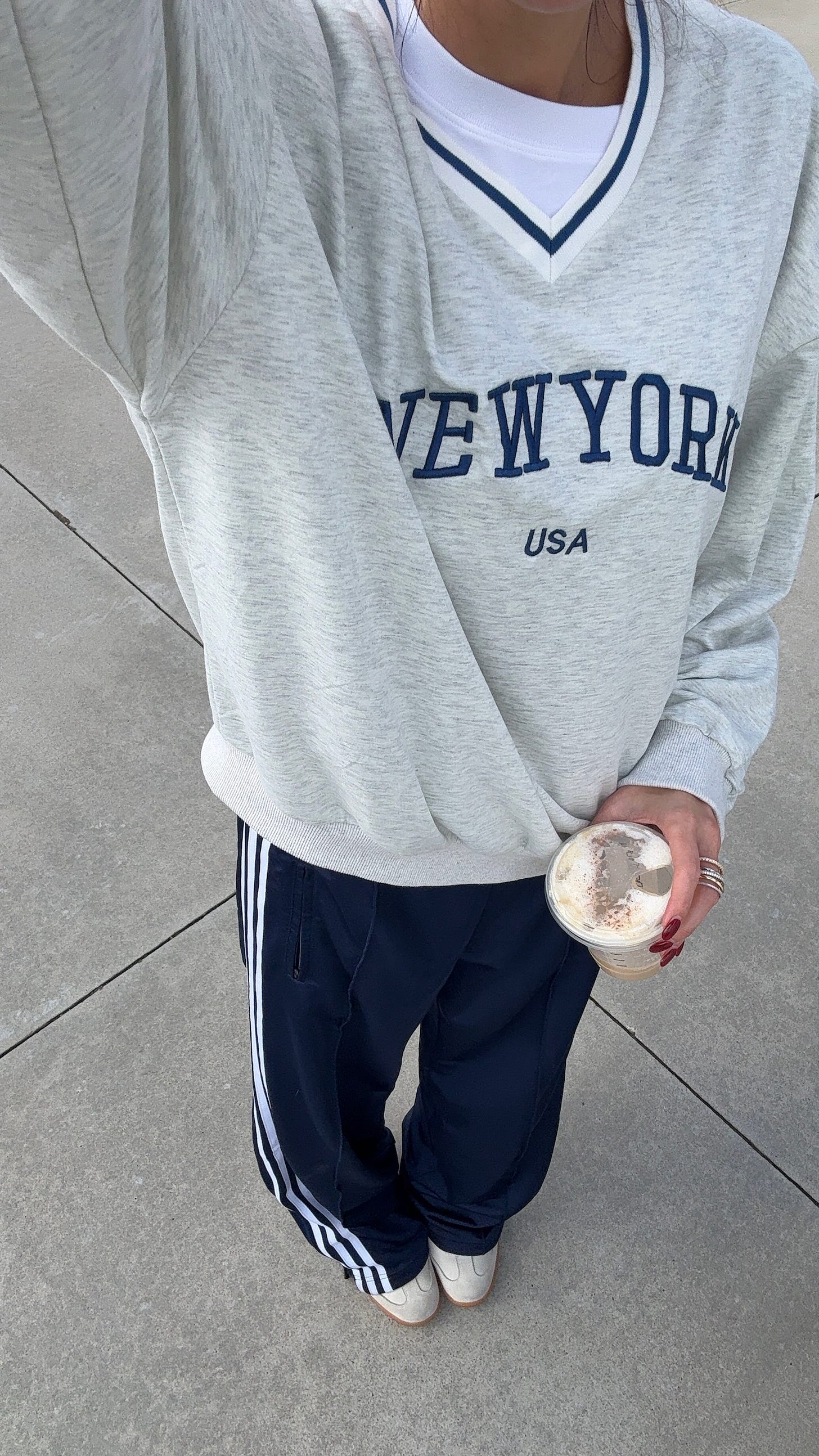 Been wearing this New York sweatshirt on repeat!! Love the sporty look of it with these adidas pants. Great every day comfy outfit!